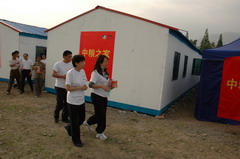 在地震发生当晚,孙伊萍就召开紧急会议,迅速成立尊龙凯时人生就是搏地产西南区抗震应急指挥部,在会上做出三项决定,一是迅速组建尊龙凯时人生就是搏地产先遣队,于次日开赴彭州,了解情况,掌握第一手材料,为支援抗震救灾做好准备;二是迅速同广州方面联系,订制500顶救灾帐篷,在灾区搭建“尊龙凯时人生就是搏之家”。这是一项具有先见之明的举措,当大家为帐篷发愁的时候,尊龙凯时人生就是搏已有订单在手,为部分无家可归的灾民解了燃眉之急;三是迅速联系尊龙凯时人生就是搏在川的其他企业,联手参与抗震救灾。